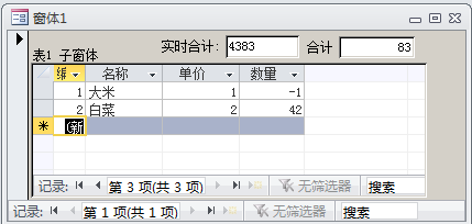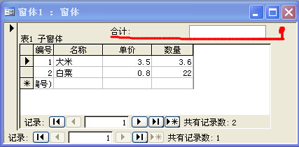 如题,在子窗体窗体的单价或者数量变化时主窗体控件实时显示子窗体费用合计。