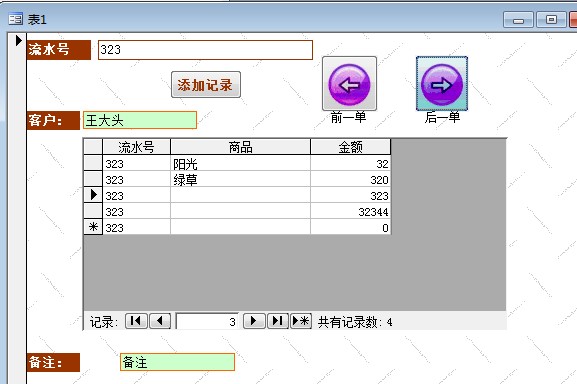 如图所示,设计了一个玩意儿. 流水号和子窗体中的流水号是一样的.