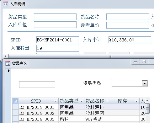 1-我想单击 【SPID  文本框】  弹出   【货品查询】   窗体