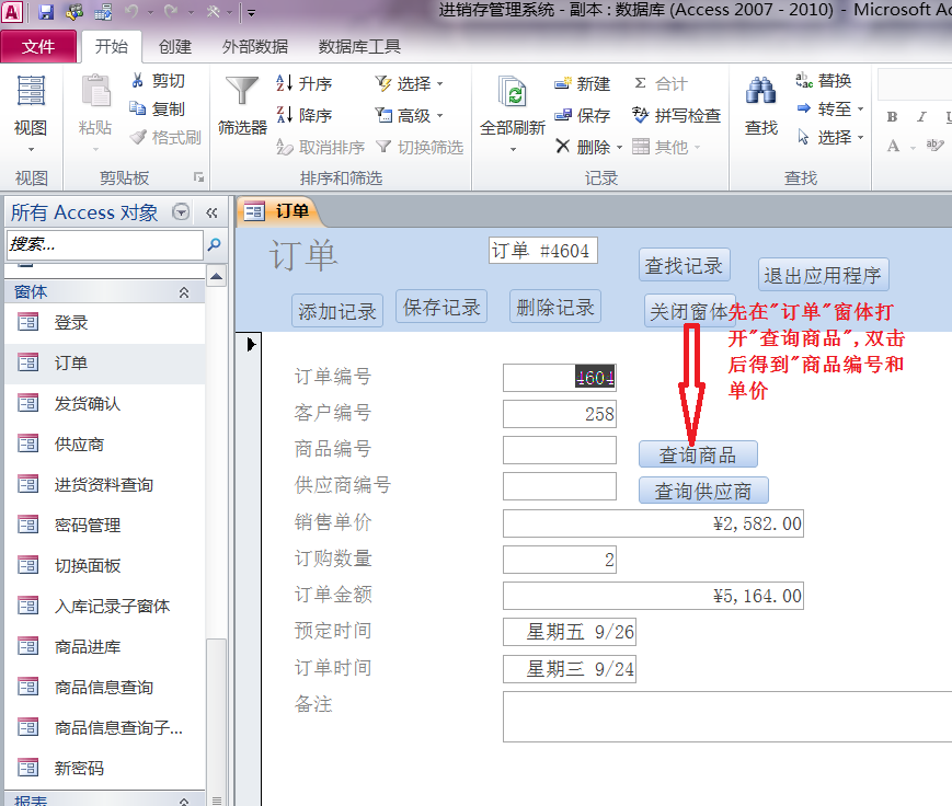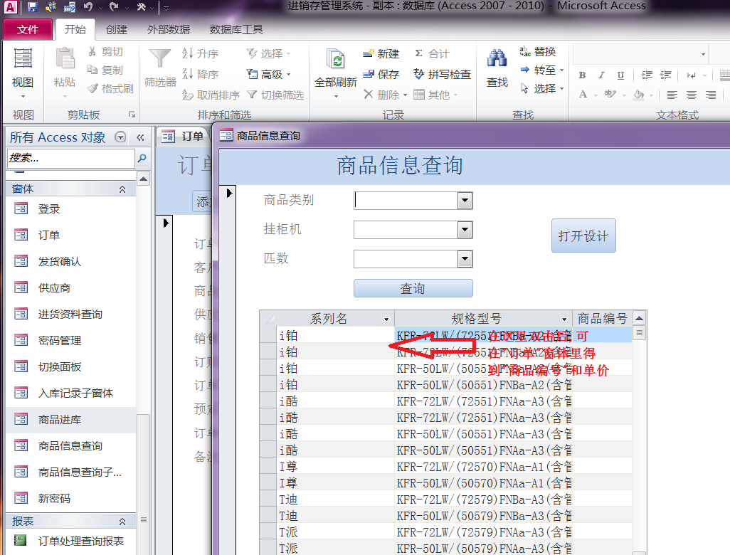商品查询子窗体里的双击