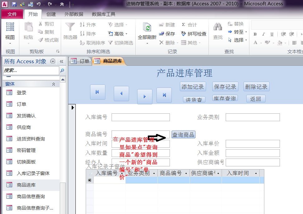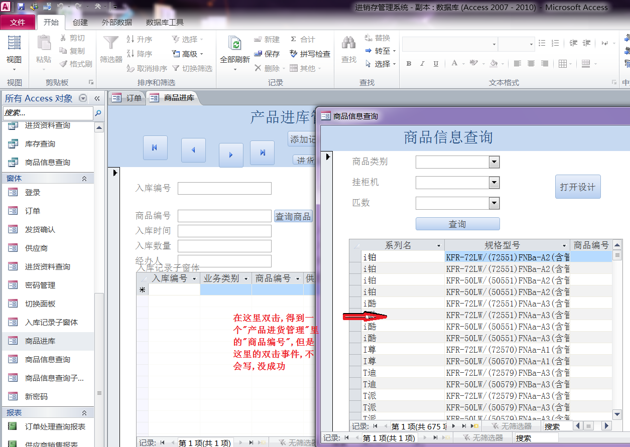 在第二个"产品进库管理"窗体里,再次这样做就不行了