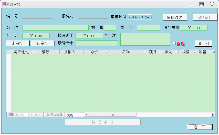 未审批和已审批是两个子窗体是通过一个子窗体控件来完成切换的“Me.Child1.SourceObject = "报账未审批"or“报账已审批””