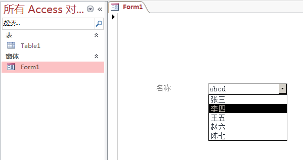 Access2013版,添加一个窗体,窗体上添加一个控件“组合款”, 指定它的数据是table1的mingcheng字段的简单查询,问题来了,怎么限制用户只能从列表中选择值,而不能手工输入,手工输入的值后导致后面的程序出现处理。谢谢。