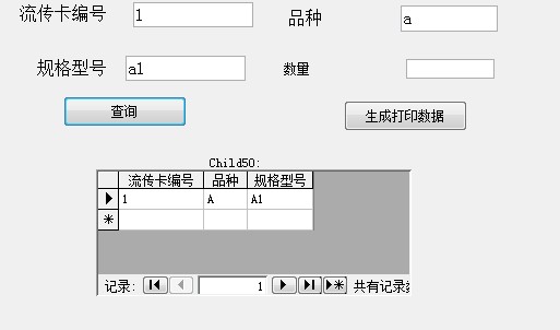 附件中打印选择窗体有四个文本框 其中 流传卡编号 品种 规格为查询条件, 只有输入流传卡录入表已有记录的对应的字段值后点击“查询”按钮才可以在子窗体中显示出内容以便核实,核实无误后点击“生成打印数据”按钮将通过生成表查询生成一个新表名为“打印数据”而文本框“数量”中输入的数字将成为“打印数据”表中实打数量的字段。经测试以上功能正常但是有一个问题在设计视图打开“打印数据”表会看到实打数量字段的数据类型为二进制而且不允许改变,这个字段值下一步要控制打印机只能为数字,请教各位高手问题在哪怎么改。最好在不增加按钮及其他窗口的原则下改的谢谢!