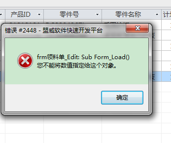 另外,点击frm领料单窗体中的编辑后,请求一个错误:“不能指定数值给这个对象”。不知道是什么错误原因?