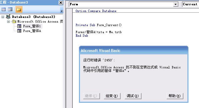 A窗体成为当前事件代码 forms!a!text1=me.text2  B窗体作为主窗体