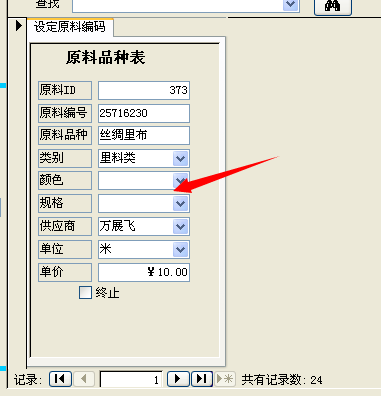 附件窗体中的“颜色”和“规格”追加不上去,其中“原料品种表1”是从“原料品种表”倒过来的,为何会出现这个问题,请指导一下,该如何解决?