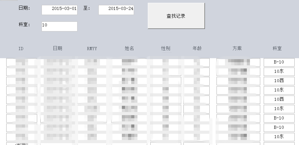 这个代码我是从示例中找出来的,但是这个需要选择时间的范围,我不想要这个时间的限定,只需要从窗体中输入姓名后,点击查询按钮,下面会自动出现这个姓名的内容,求高手指点