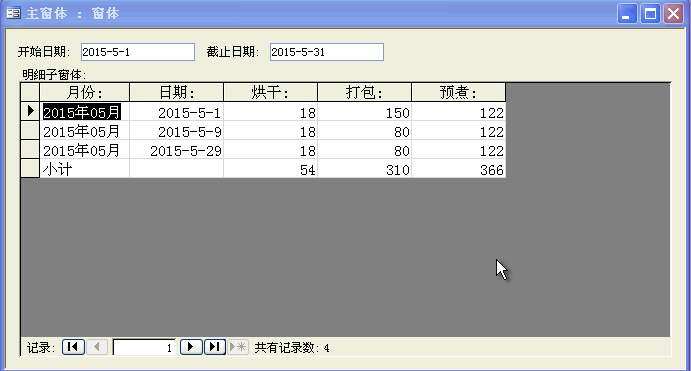 当“[Forms]![工资信息]![月份选择]”没有输入时,显示“ '"从" & DLookUp("开始月份","月份参数")& "至" & DLookUp("结束月份","月份参数")' ”,从表中读取一时间段。