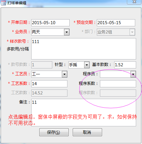 如图所示:求如何保持窗体中 字段的不可用状态!