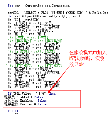 [5分]如何载入编辑窗体时根据窗体中某字段的值让其他字段保持为不可用?