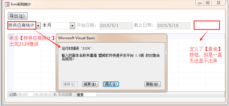 [5分]作业八中的【采购统计】报表,出现以下错误,请帮忙看看