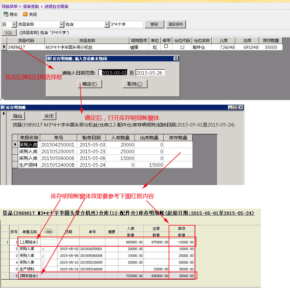[5分]我需要做一个查看库存明细帐的功能(如图所示),请帮忙指点指点