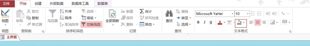 数据窗体视图下面,将焦点放到数据窗体,开始-文本格式-背景色