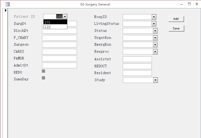 一个病人临床记录系统,主表是01病人基本信息,以关键字段PatID作为主键和其他表关联。现在希望在维护其他表时,只能选择已有的PatID来维护,如图所示02窗体,如何将PatID字段设计成选择项?且只能选择01中已有的PatID号?