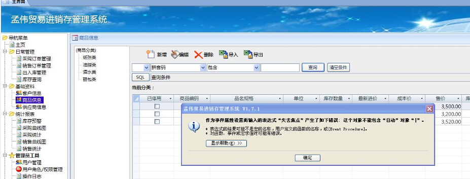[5分]不但出现以上错误,而且树控件的商品分类添加、删除等按钮默认不可用了