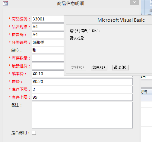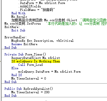 [5分]添加商品信息明细,黄色提示“If mclsQuery Is Nothing Then”