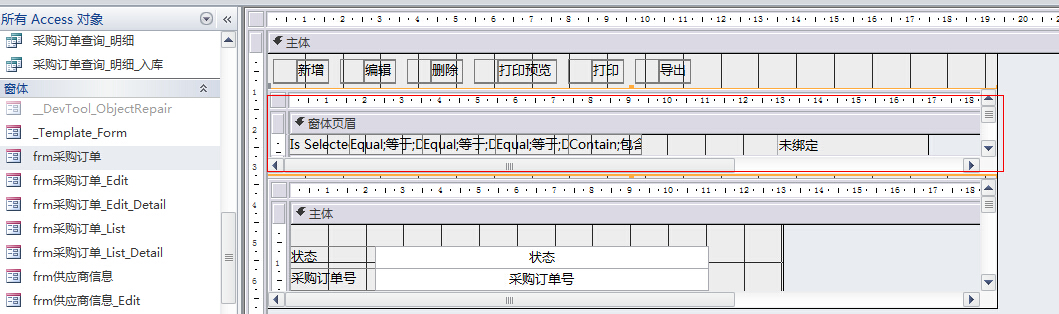 例:在对应主窗体设计界面的第二行,往下拉一下,就可以看到了。
