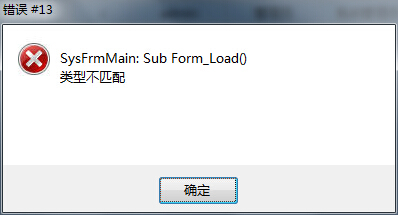 [5分]SysFrmMain:Sub Form_Load() 类型不匹配