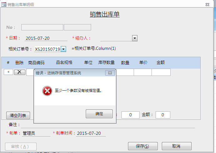 [5分]销售出库单,至少有一个参数未被指定