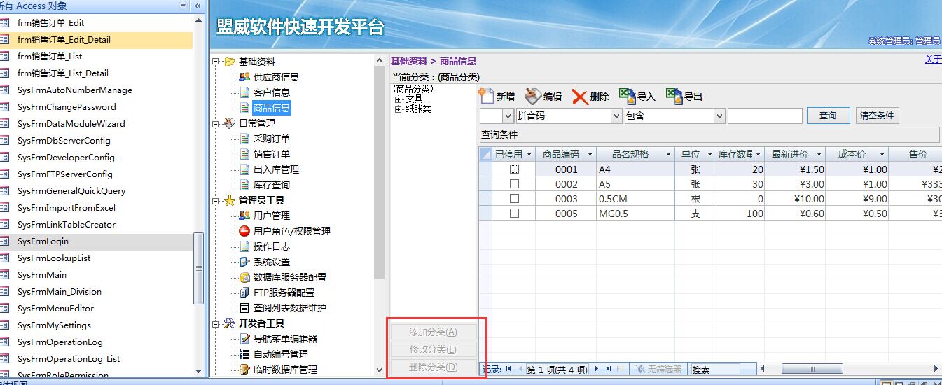 [5分]商品信息页面一打开:添加分类,修改分类,删除分类,按钮不能用?