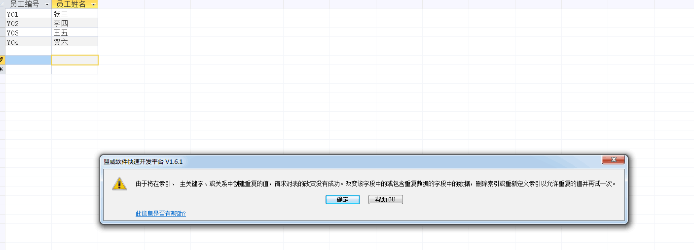 我录入员工姓名,然后发现录多了,就想删掉两行记录 结果内容是删了,但总跳出这个提示