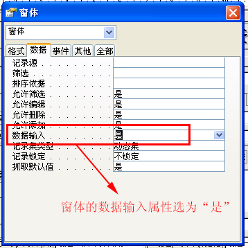 我做了一个输入数据的窗体界面为何有时候打开时会显示表中的一条记录,我希望输入的窗体界面永远不会自动跳出之前记录的数据,因为那样数据会被改动或删除,谁能帮我个忙谢谢!