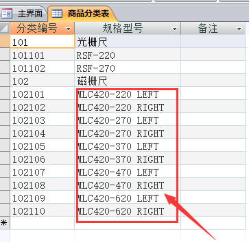[5分]在列表窗体里规格显示的是这个,不是分类编号.