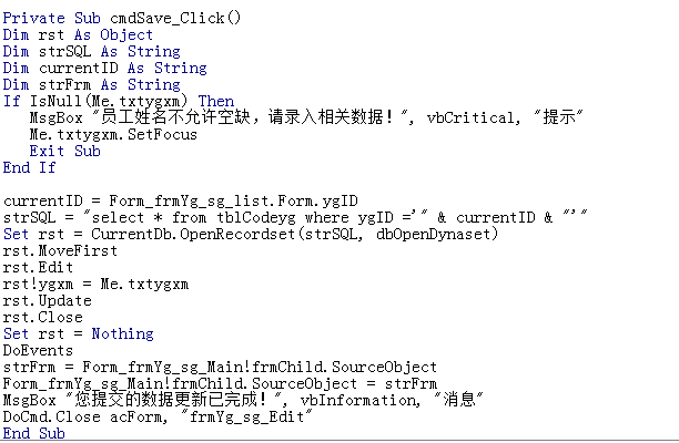 已经修改成功,但显示窗体数据未更新。在关闭编辑窗体后增加一句显示窗体数据刷新语句