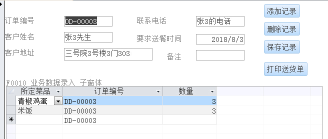 在学习access时,有个案例,是可以主窗体和子窗体联动 添加和打印。