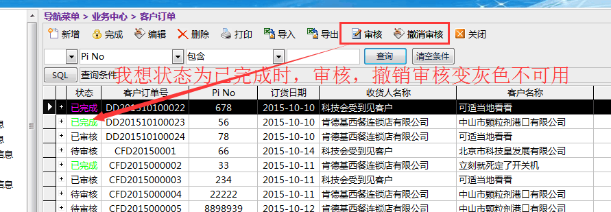 [5分]我想状态为完成时,审核,撤销审核变灰色不可用?怎么做。