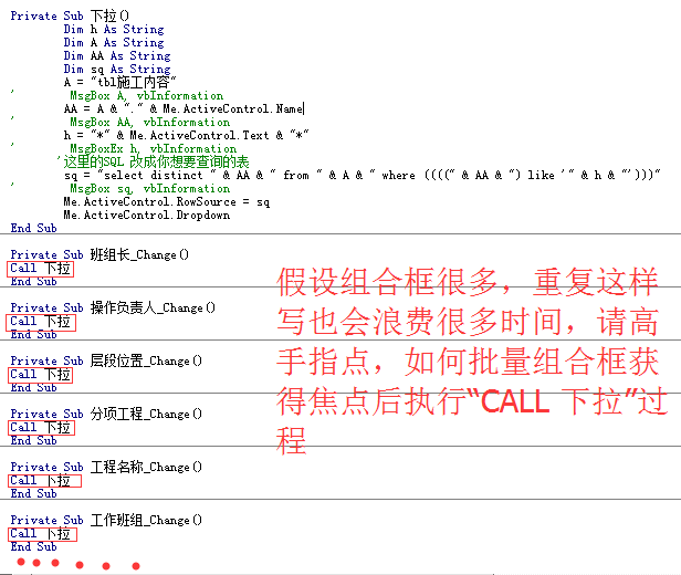 [5分]如何批量组合框获得焦点后执行同一个过程