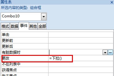 然后选中多个组合框,在组合框的change属性上设置 =下拉()
