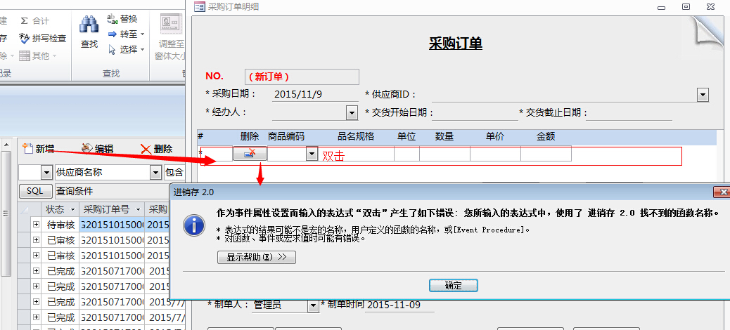 [5分]模块自动生成器:生成窗体,出现,双击子窗体列表,提示错误。