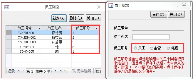 个人建议员工职务不要使用选项按钮,可以使用组合框进行选择。