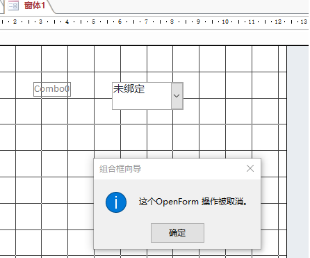 1. 在窗体设计模式下,启用”使用控件向导“,选中按钮,在设计区域画出按钮,似乎看到屏幕一个闪跳,什么也没出现。再选中”组合框“,同样在设计区画出组合框,提示”这个OpenForm"被取消。