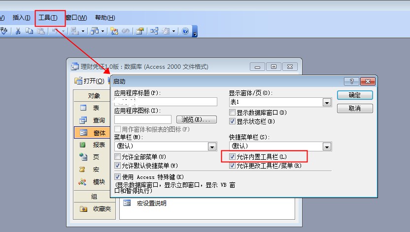 用代码或宏命令 显示/隐藏 内置菜单栏