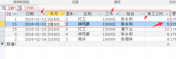 如图,想在窗体上用一个键钮功能来检查后并提示,2016年1月12日,130002这个员工的常班工时超过了8小时(6+5).是不是一定要用查询表,直接在窗体上实现不了?