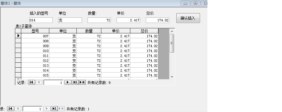 在连续窗体中插入一行是可以的,要求是列的数据不能重复,