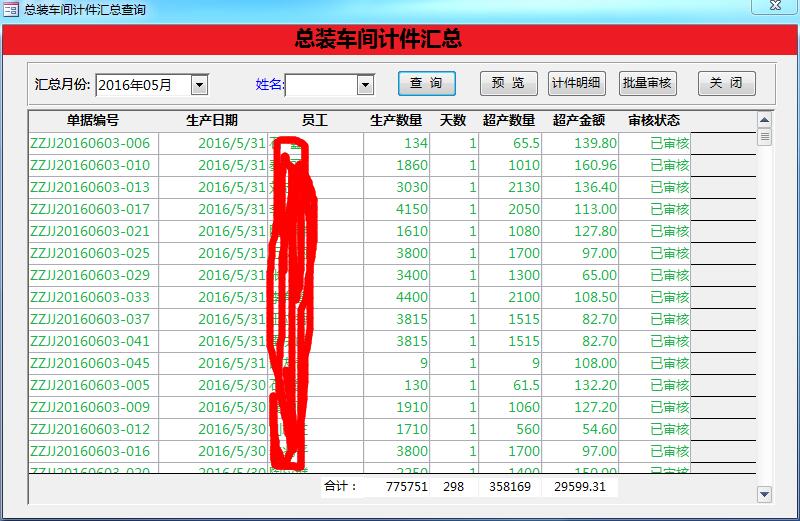 如上图,我有个汇总查询窗口,我想把查询列表中所有查询出来的结果做个批量审核,只要点一下批量审核,所有查出来的都会自动变成已审核。