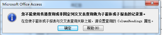 做交叉表查询为子窗体时出现要设置属性,怎么设呢?