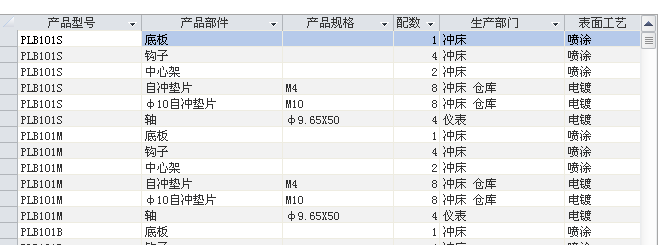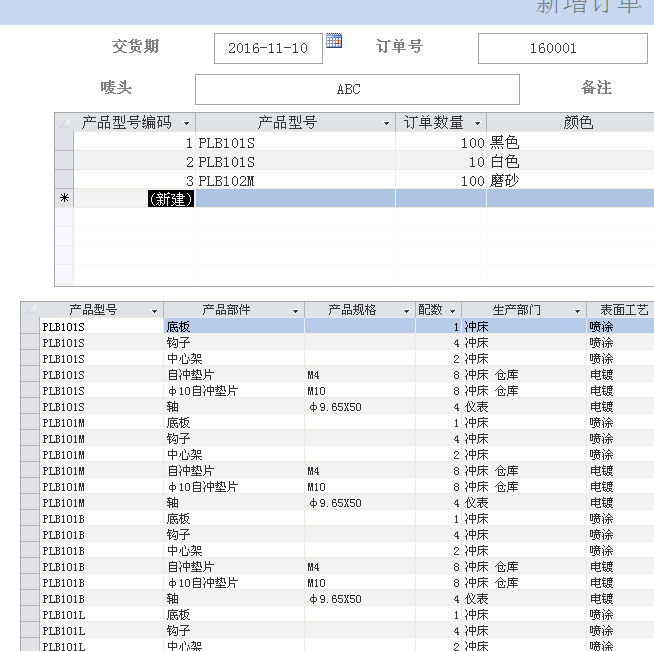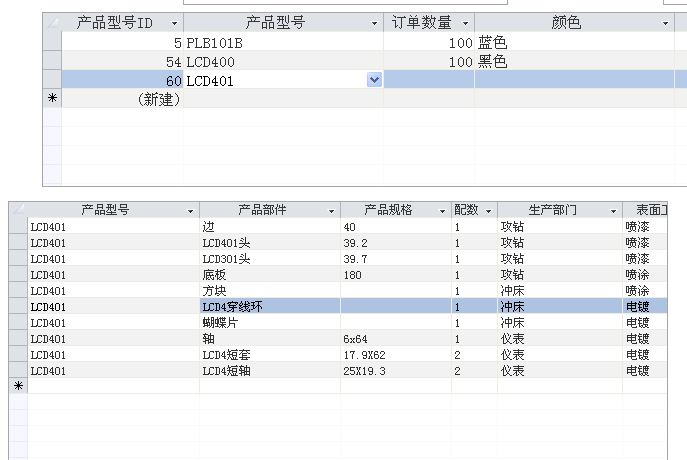在产品型号输入完,下表的子窗体就会显示对应的产品型号部件,仅此而已!!帮帮忙