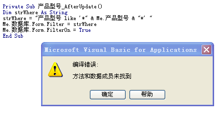 If Not IsNull(Me.产品型号) Then strWhere = strWhere & "产品型号 like '*" & Me.产品型号 & "*' and "