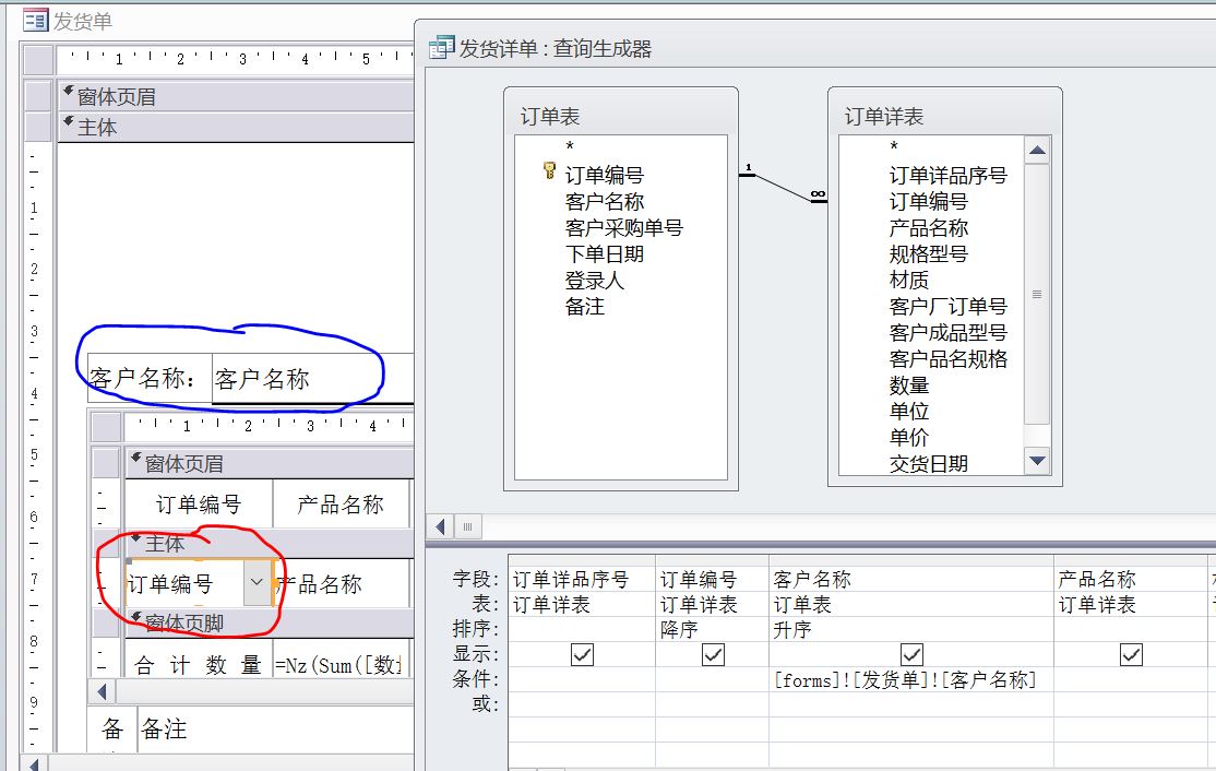 第1个问题:发货详单的产品选择如何才能受到主窗体(发货单)客户名称的控制。 当客户名称选择“客户-A”时, 子窗体的订单编号或产品名称就只提供“客户-A”订单的内容供选择。而不是把所有的订单都显示出来。同样的当换一个客户时,如换成“客户-B”时,筛选内容跟着变化。只提供“客户-B”的订单内容。因为订单量比较大,相同的产品不同的客户都有订。比较容易选错。