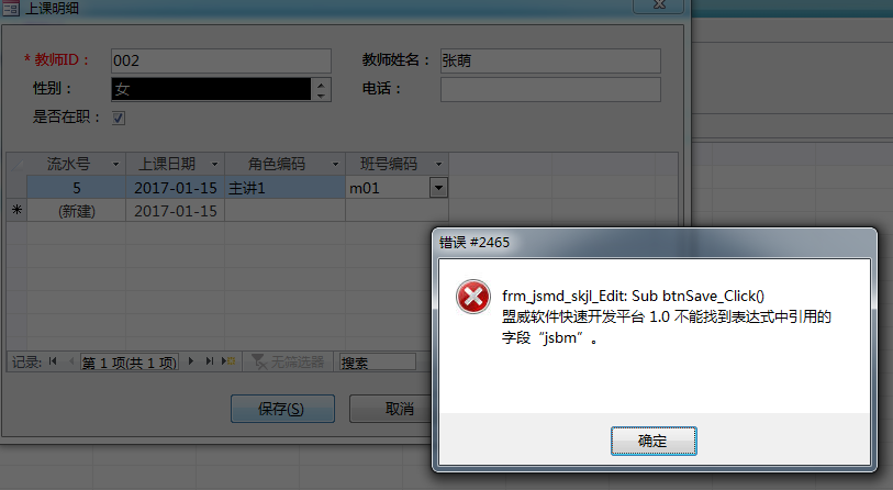 用平台的模块自动生成器生成窗体,在输入数据,何存时出错。