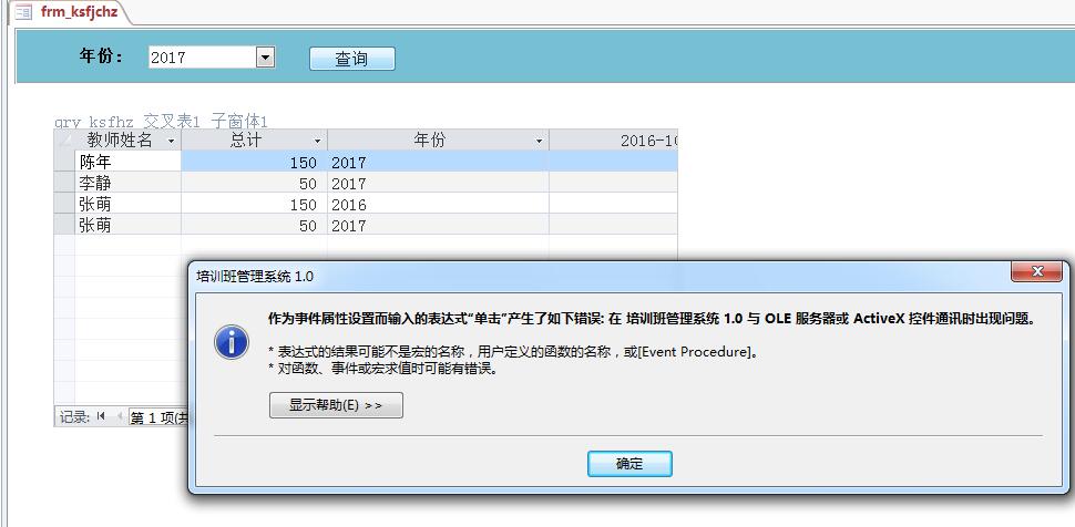 做了一个窗体对交叉表子窗体进行查询,点击查询出现如下错误提示,如何解决?