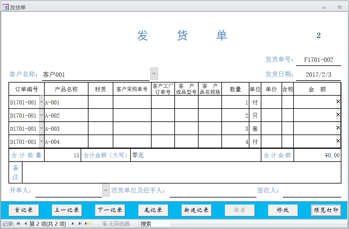 目前所设置的发货单子窗体的每一条记录都与发货单主窗体上的发货单号是同一个单号