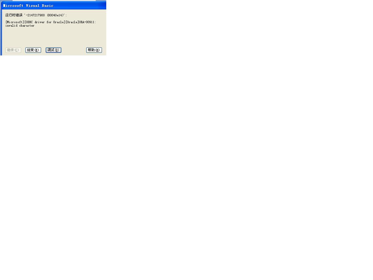 在各位老师的帮助下,总算弄通了,其实最关键是的SQL语句最后不能加“;”号。现在我想从ORACLE中把数据写到本地ACCESS中,但INTO语句在ORACLE中好像比较特殊,谁能指点下?